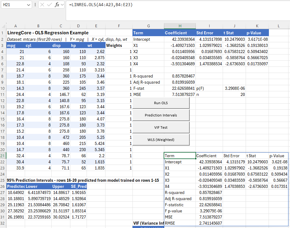Not everything in linreg-core maps cleanly to a worksheet formula.